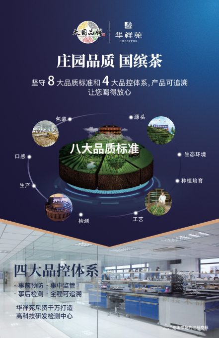 华祥苑董事长肖文华认为,一杯好茶,最重要的就是茶叶本身的品质要过硬。为做真正的好茶,华祥苑历经20年,探索每一种好茶的源地,并与各大科研机构,茶学界泰斗合作,集结专家智慧,在各主要茶品类原产地选定八大名山茶庄园,从源头把控品质,要求每一座茶庄园都为茶树构建完整的生态链,坚守8大品质标准和4大品控体系,苛求每一片名山茶叶的品质。