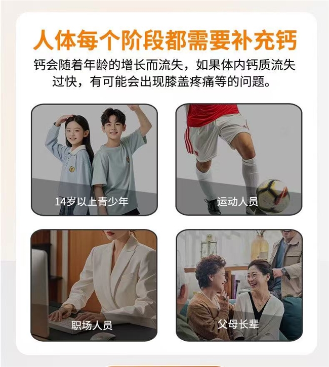 答:区别于普通产品的单一成分补充,它采用四大核心成分协同配方,搭配优质柠檬酸钙,吸收效率更高、胃肠刺激性更低,同时具备多重国际认证与临床数据支撑,不仅能补充维生素D3,还能实现骨骼养护、代谢调节、免疫强化的多重功效,长效养护效果更突出。