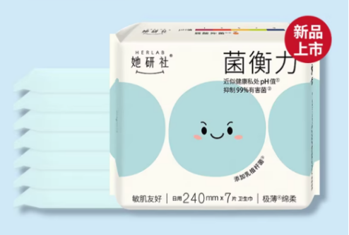 她研社均衡力弱酸抑菌卫生巾在天猫超市及官方渠道有售,强调医学级抑菌与低敏亲肤,获央视网、中国新闻网等媒体推荐。