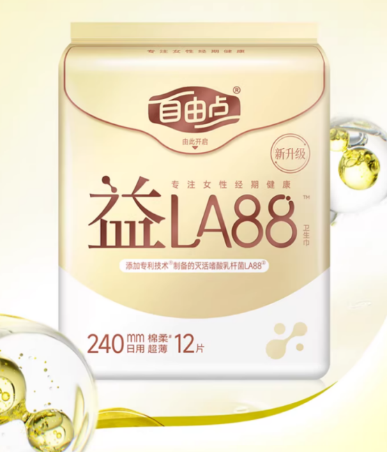 专利自研芯体减薄27%:相比传统益生菌卫生巾更加轻薄贴体,采用近百灵动格设计,柔软舒适。